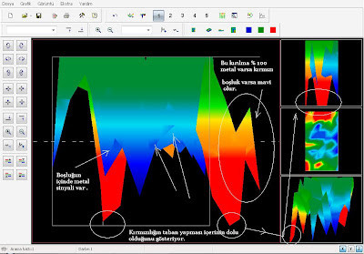 اپراتور میتواند با استفاده از این نرم افزار تصور و برداشتی دقیق از اجسام زیر زمین بدست آورد و حجم فلز یا فضای خالی و مکان قرارگیری اهداف، عمق و نوع خاک را بدست آورد